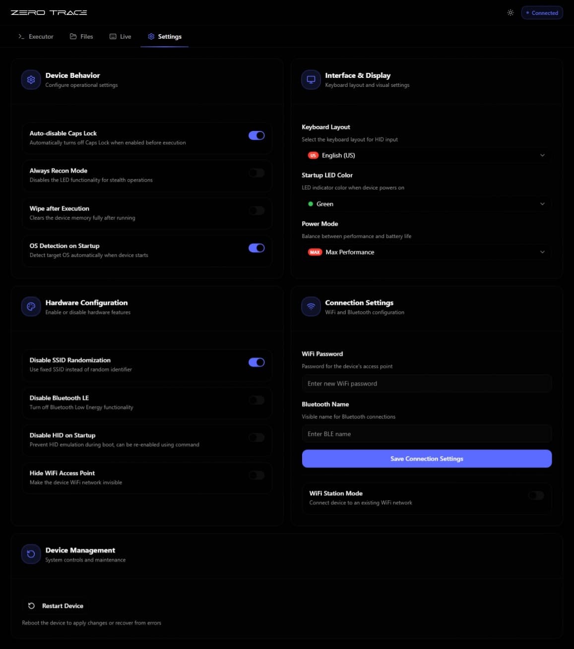 A browser-based control center to manage payloads, run scripts, and configure your device wirelessly.